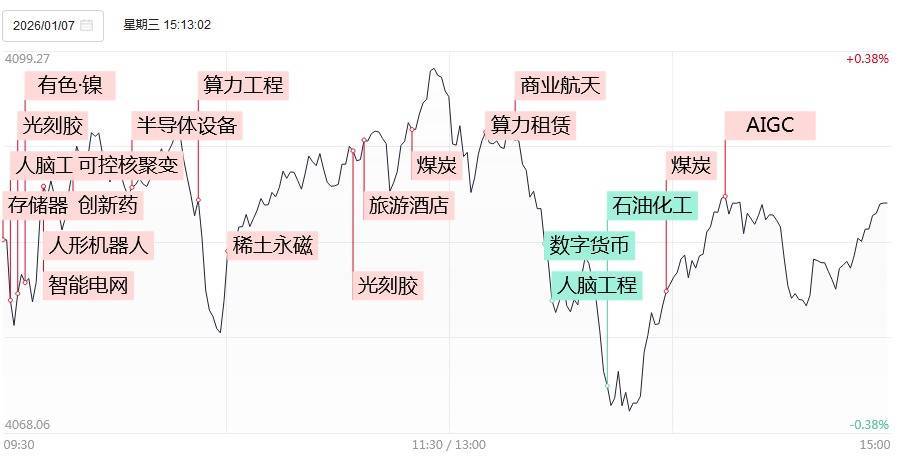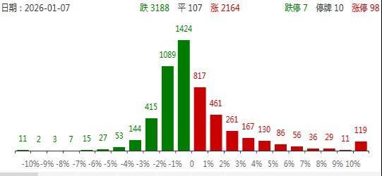 1月7日,A股三大指数今日小幅上涨,沪指录得14连阳,创业板指冲高回落。截止收盘,沪指涨0.05%,收报4085.77点;深证成指涨0.06%,收报14030.56点;创业板指涨0.31%,收报3329.69点。沪深两市成交额2.85万亿,较上一个交易日放量476亿,成交额连续2个交易日超2.8万亿。盘面上,市场热点快速轮动,全市场超3100只个股下跌。